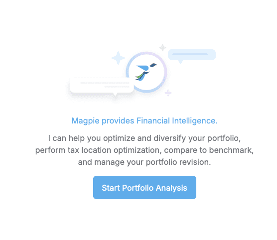 | What You’ll SeeThree real-time widgets alongside Magpie’s analysis: 1. Portfolio Allocation — Current vs. In Progress vs. BenchmarkThree side-by-side views showing where you are, where the optimization is taking you, and where your wealth plan says you should be. Drill down from asset class to individual security. See the gap closing in real time. 2. Preferences & Constraints Every hard constraint and soft preference — clearly separated, editable, with AI-suggested items marked. The guided setup walks you through it if you’re not sure where to start. 3. Suggested Portfolio Updates — The Action PlanSpecific buy, sell, and transfer recommendations by account — with share counts and dollar amounts. Not vague guidance — actual trades you can execute at your brokerage. Hit “Create tasks list”and the entire plan becomes a trackable checklist. Export to PDF. When Magpie is done, she gives you the “What the Optimizer Accomplished”summary — a checklist showing exactly what was achieved: all constraints honored, benchmark gaps closed, tax-smart placement executed. Every decision explained. Every dollar accounted for. What Makes It Revolutionary • Benchmark-driven optimization. The Optimizer’s primary goal is to close the gap between your current portfolio and the personalized benchmark derived from your lifetime wealth plan. • Cross-account intelligence. Optimizes across your 401(k), IRA, taxable accounts, and everything else — simultaneously. • Tax-smart placement. The optimizer decides not just what to hold, but where to hold it. • Deep strategy analysis. Full account-by-account before/after tables, position-level commentary, and section-by-section reasoning. • Conversational with voice input. No forms. No menus. Talk to Magpie in plain language or speak to her using the microphone. • AI-suggested constraints. Magpie identifies opportunities from your portfolio and suggests them — each marked with an AI badge and toggle. • Full transparency. Every trade, every share count, every dollar amount. One-click task creation. Export to PDF. No black box. And Manual Portfolio Revision is still one click away for when you want hands-on control. Two modes, one platform, complete flexibility. Try It NowThe AI Portfolio Optimizer is available today for all Premium and Lifetime subscribers. Not on Premium yet? Start your 14-day free trial and experience the future of portfolio management. |